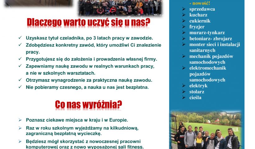 View More Święto Patrona Zbigniewa WodeckiegoRekrutacja – oferta Branżowej Szkoły I stopnia z Krynicy-Zdroju