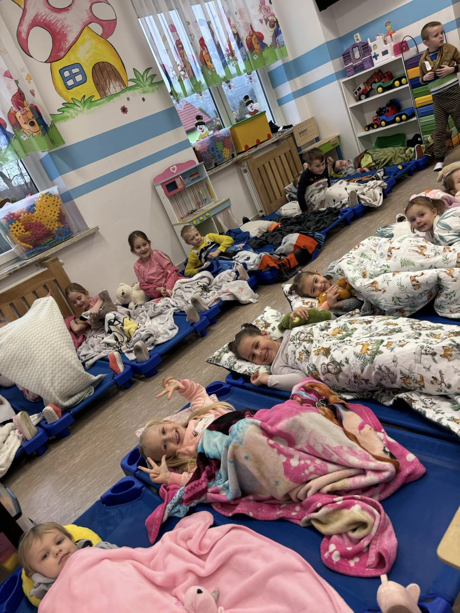 „ Dzień w Piżamach” takie atrakcje dzisiaj mieliśmy w naszym przedszkolu. Dzieci ubrały się w swoje piżamki, zabrały swoje ulubione pluszaki i tak spędziły miłe chwile. Nie mogło zabraknąć również pysznych przekąsek.