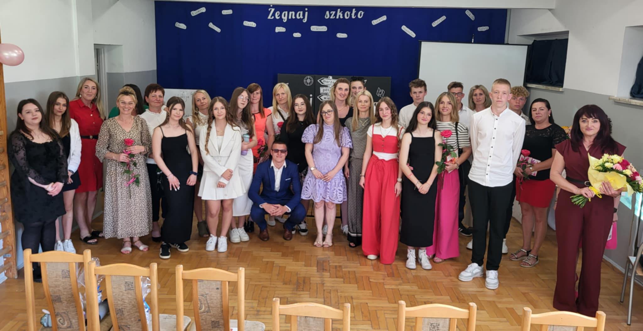 Pani Dyrektor Angelika Stoińska wygłosiła przemówienie, podkreślając znaczenie współpracy z rodzicami i uczniami klasy VIII. Każdy uczeń otrzymał od niej pamiątkę na dalszą edukację, co na pewno będzie dla nich miłym wspomnieniem.